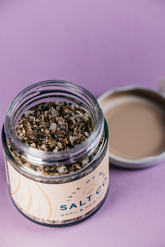Ingredients: Isle of Man sea salt, roasted garlic flakes, wild garlic, rosemary, thyme, oregano, sage.